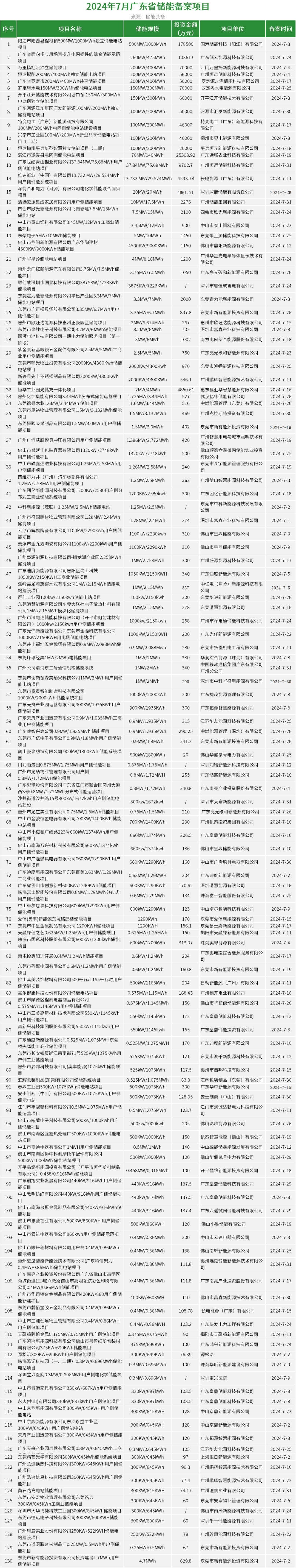 7月广东储能产业相关的完成备案的项目有45个,其中涉及到电极材料、电池制造、电池模组pack线、储能配件、储能系统集成、电池回收、电池研发等产业升级以及技改项目。