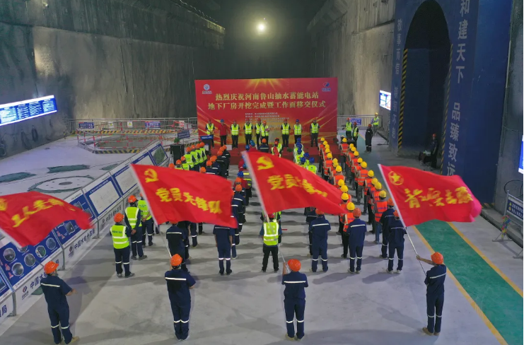 8月29日,河南鲁山抽水蓄能电站举行地下厂房开挖完成暨工作面移交仪式,鲁山豫能抽水蓄能有限公司总经理王晨阳,水电十四局一级专家(技术)、土木工程公司党委委员、副总经理侯孝军出席仪式并发言。