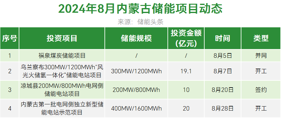 8月,内蒙古有7个储能电站项目更新了动态。储能规模为900mw3600mwh,明确投资金额49.1亿元。