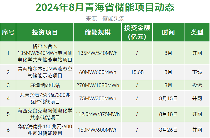 8月,青海有6个储能电站项目更新了动态。储能规模为802.5mw3495mwh。
