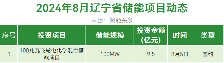 8月,辽宁有1个储能电站项目更新了动态。储能规模为100mw。