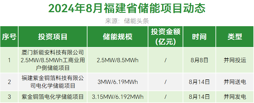8月,福建有3个储能电站项目更新了动态。储能规模为8.65mw20.882mwh。