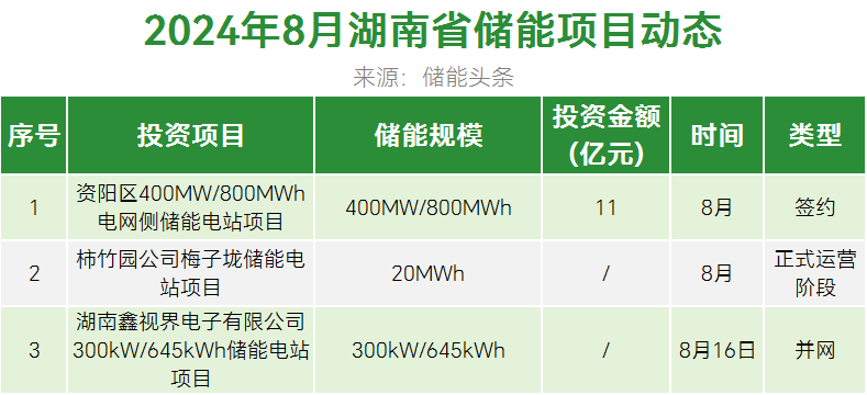 8月,湖南有3个储能电站项目更新了动态。储能规模为400.3mw820.645mwh。