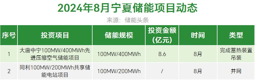 8月,宁夏有2个储能电站项目更新了动态。储能规模为200mw600mwh。