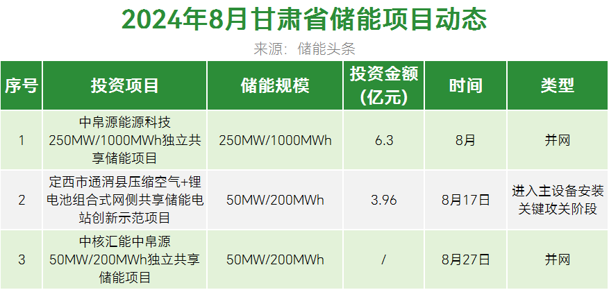 8月,甘肃有3个储能电站项目更新了动态。储能规模为350mw1400mwh。