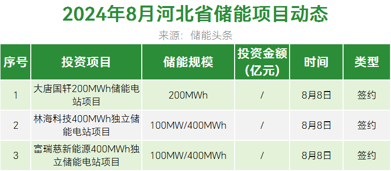 8月,河北有3个储能电站项目更新了动态。储能规模为200mw1000mwh。