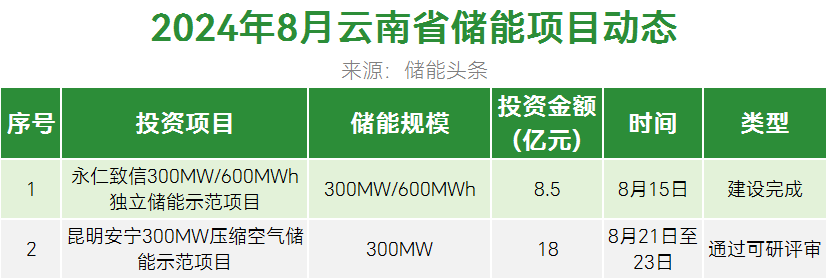 8月,云南有2个储能电站项目更新了动态。储能规模为600mw600mwh,明确投资金额26.5亿元。