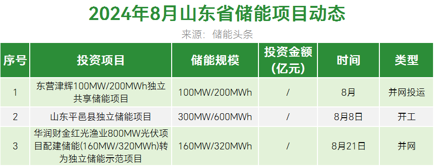 8月,山东有3个储能电站项目更新了动态。储能规模为560mw1120mwh。
