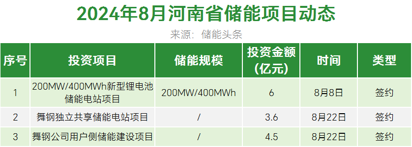 8月,河南有3个储能电站项目更新了动态。储能规模为200mw400mwh,明确投资金额14.1亿元。