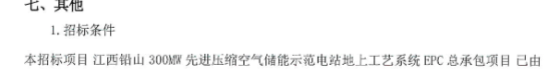 江西铅山300mw先进压缩空气储能示范电站epc总承包招标