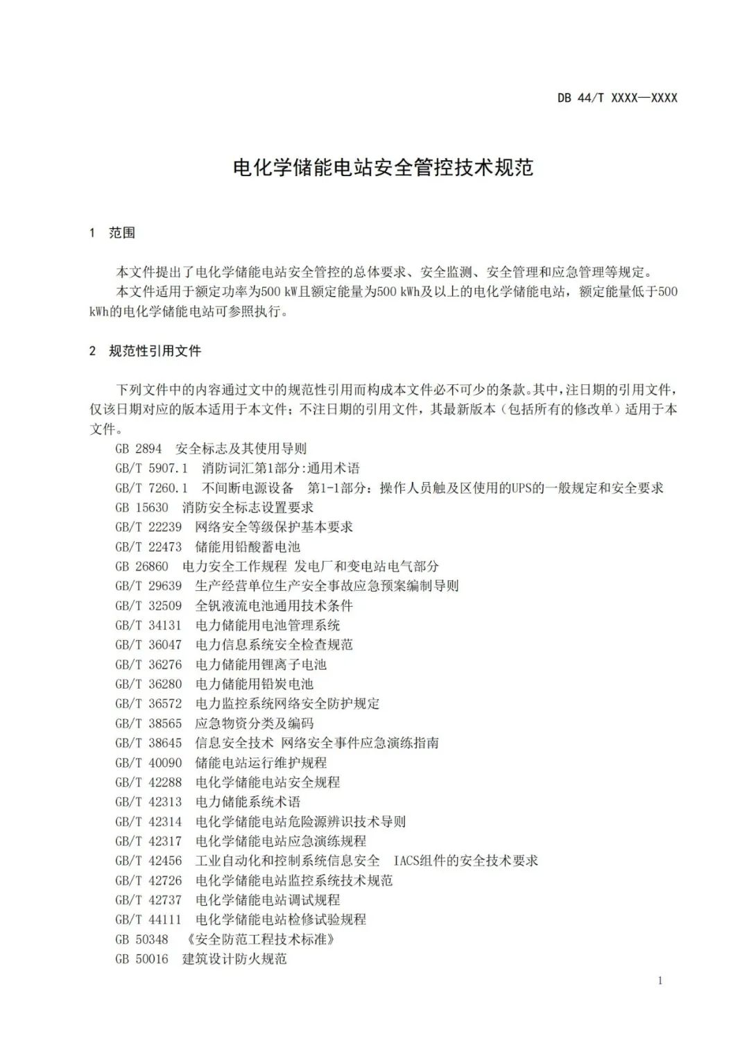 获悉,10月15日,广东省应急管理厅关于征求《电化学储能电站安全管控技术规范(征求意见稿)》地方标准意见的函。