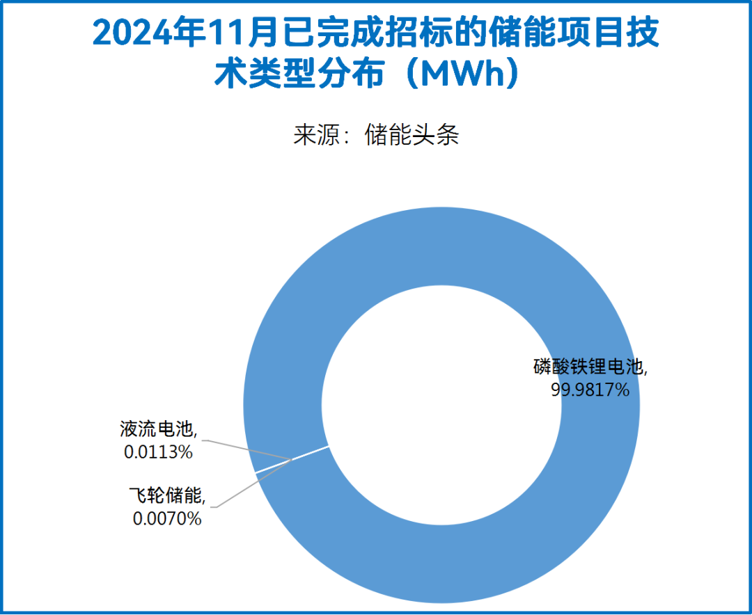 其中,11月份,锂电池储能仍占主流,共完成招标近17.72gwh;其次,是液流电池,2mwh,占比0.0113%;此外,10月还完成少量飞轮储能招投标,占比仅为0.007%。