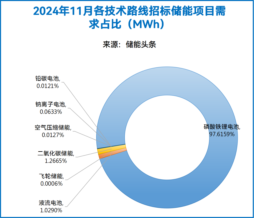 从技术路线看,11月份,锂电池储能仍占主流,共招标规模61.66gwh;其次,是液流电池,650mwh,占比1.03%。