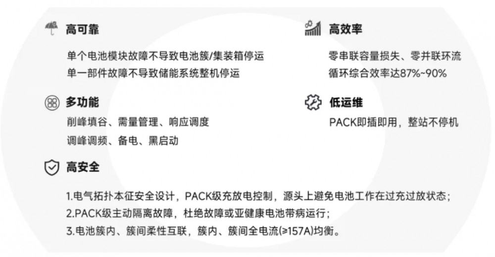 mmb1.0产品,创造性提出全新的储能整机电路拓扑与控制架构,实现电气拓扑级本征安全。首创全电流控制系统,实现控制颗粒度精细到pack级的超级电池管理能力。该技术拥有超强的soc均衡能力,实现了电池簇间和电池簇内的soc全电流均衡(>140a),解决了常规集成技术电池刚性串并联导致的串联容量损失、并联环流问题及过充过放导致的安全隐患,使系统一次放电量提升5%,全生命周期可放电量提升约20%,全生命周期成本降低15%,从源头上避免电池滥用及电池带病运行导致的安全问题。