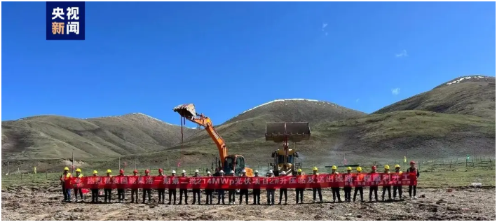 5月25日,在海拔4200米的青海省果洛藏族自治州玛沁县大武乡,果洛一期30万千瓦第二批21.4万千瓦光伏项目及升压站送出工程正式开工建设。