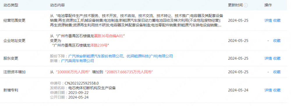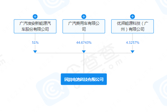 根据股权穿透图显示,该公司现由广汽集团旗下广汽埃安新能源汽车股份有限公司、乘用车有限公司、优湃能源科技(广州)有限公司共同持股。