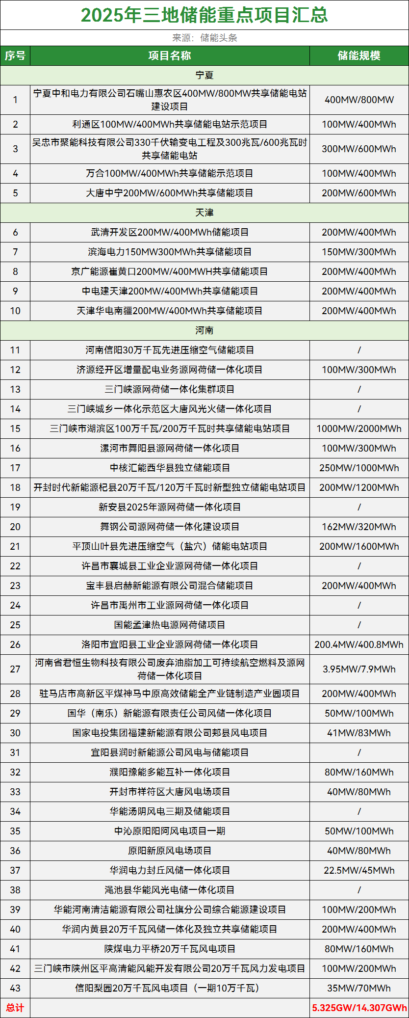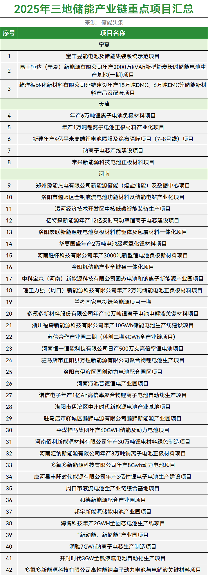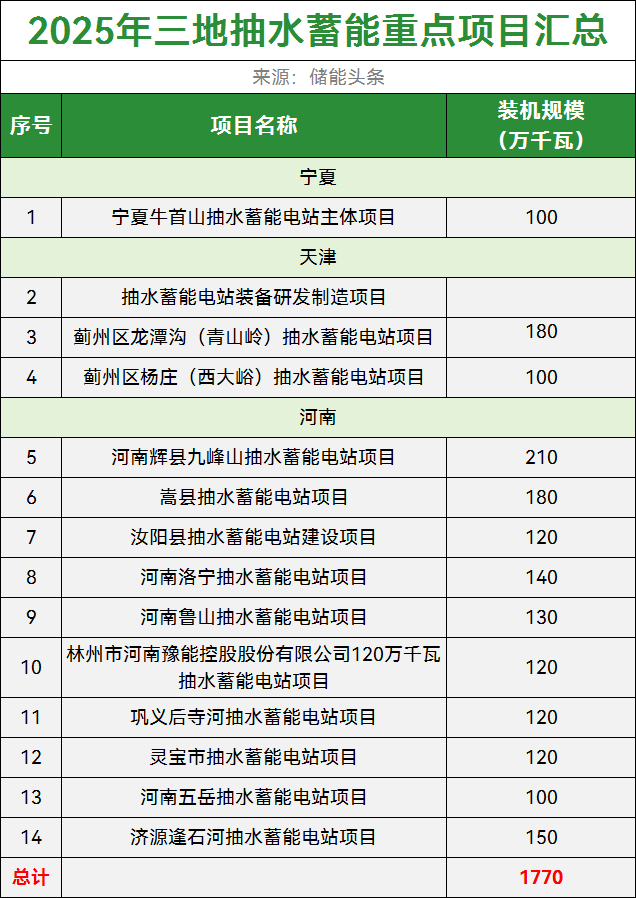 获悉,近日,天津、宁夏、河南相继发布2025年重点建设项目名单,涉及储能相关项目共99个。