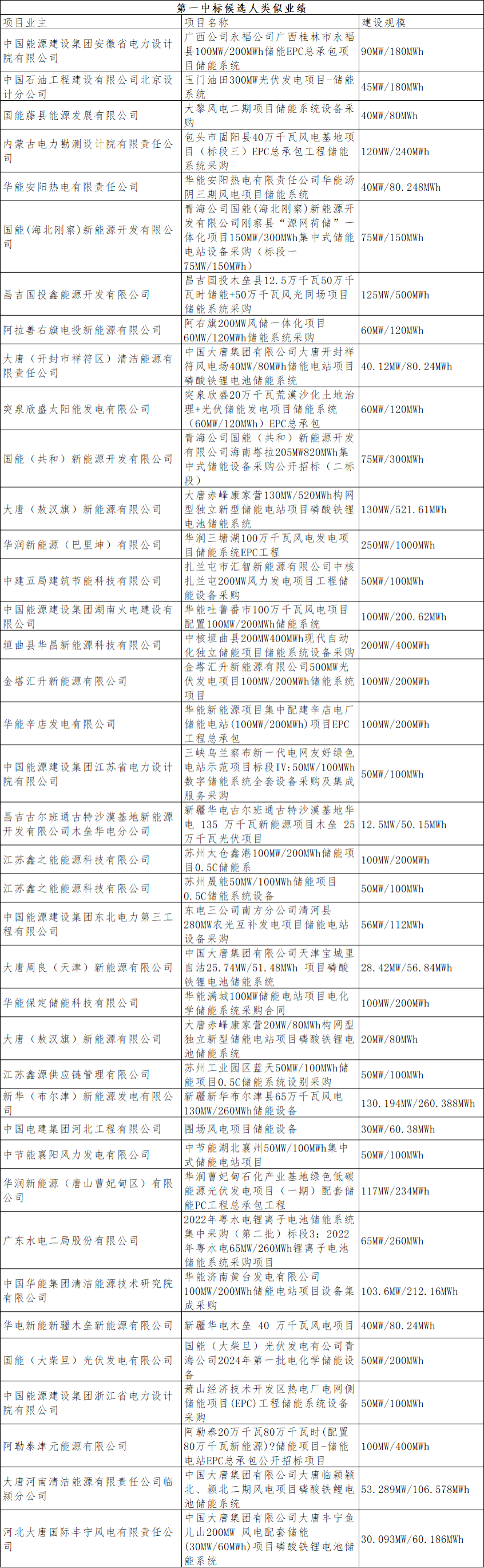 另外,据评选结果公示,另有6家企业被否决投标,包括中车株洲电力机车研究所有限公司、中能建储能科技(武汉)有限公司、江苏天合储能有限公司、许昌许继电科储能技术有限公司、东方电气自动控制工程有限公司、宁德时代新能源科技股份有限公司。
