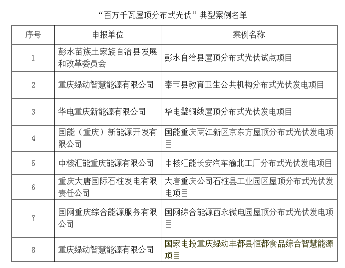 3月19日,重庆市能源局发布《关于印发能源领域“抓项目扩投资”“百万千瓦屋顶分布式光伏”典型案例的通知》。