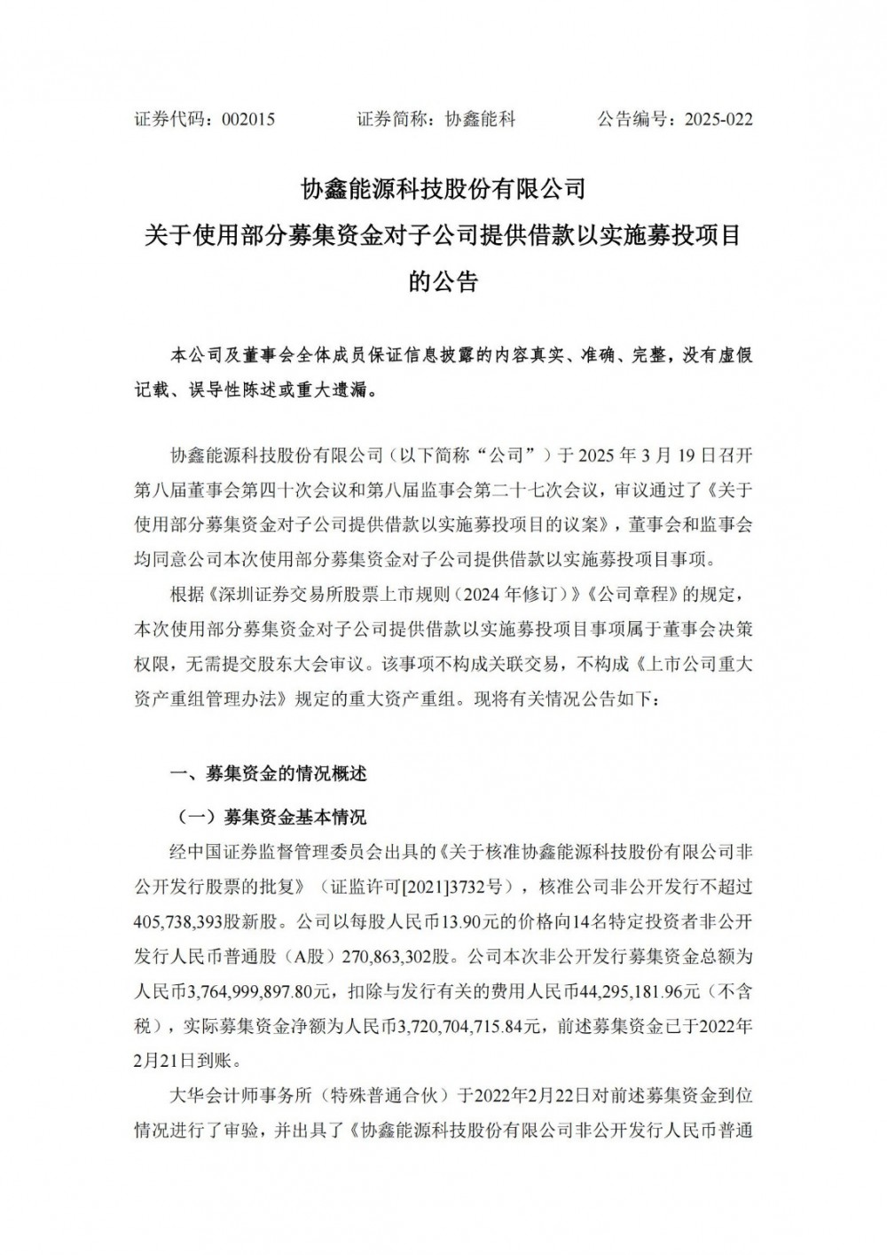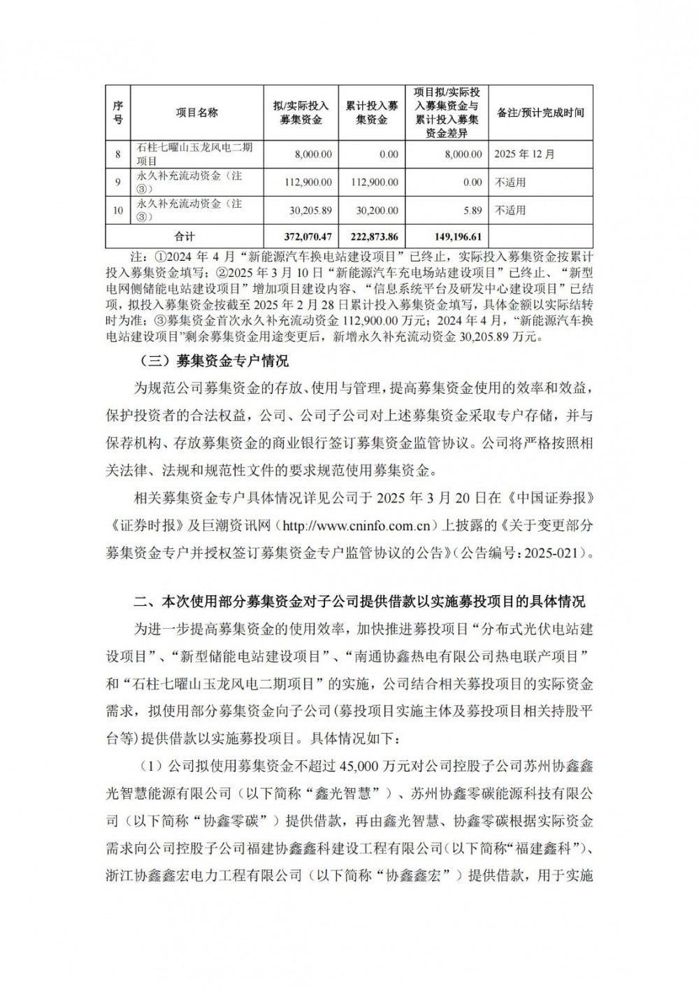 3月20日,协鑫能科发布使用部分募集资金对子公司提供借款以实施募投项目的公告,拟使用15.2亿元募资募投新型储能电站建设项目、分布式光伏电站建设项目、南通协鑫热电有限公司热电联产项目、石柱七曜山玉龙风电二期项目。