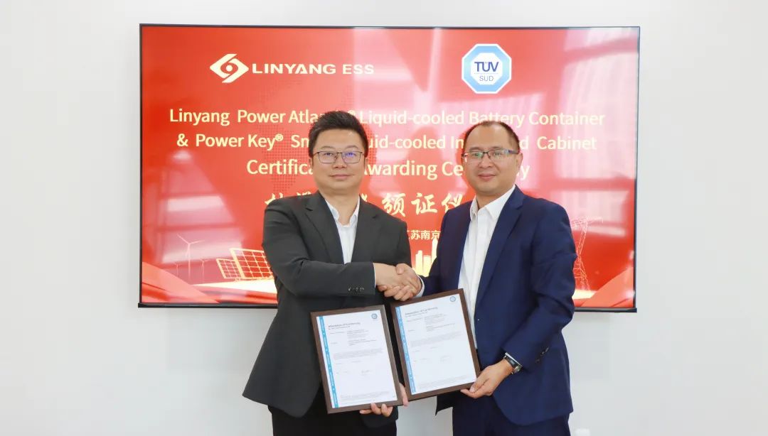 3月24日,林洋储能与tüv南德意志集团联合举办产品授证仪式,正式宣布林洋储能自主研发的power atlantic®液冷储能电池舱及power key®智慧液冷储能柜成功通过欧盟ce认证。tüv南德意志大中华集团智慧能源副总裁许海亮、智慧能源储能项目经理刘海洋,林洋能源高级副总裁方壮志、林洋储能副总经理何振宇博士及双方技术团队代表共同出席仪式。