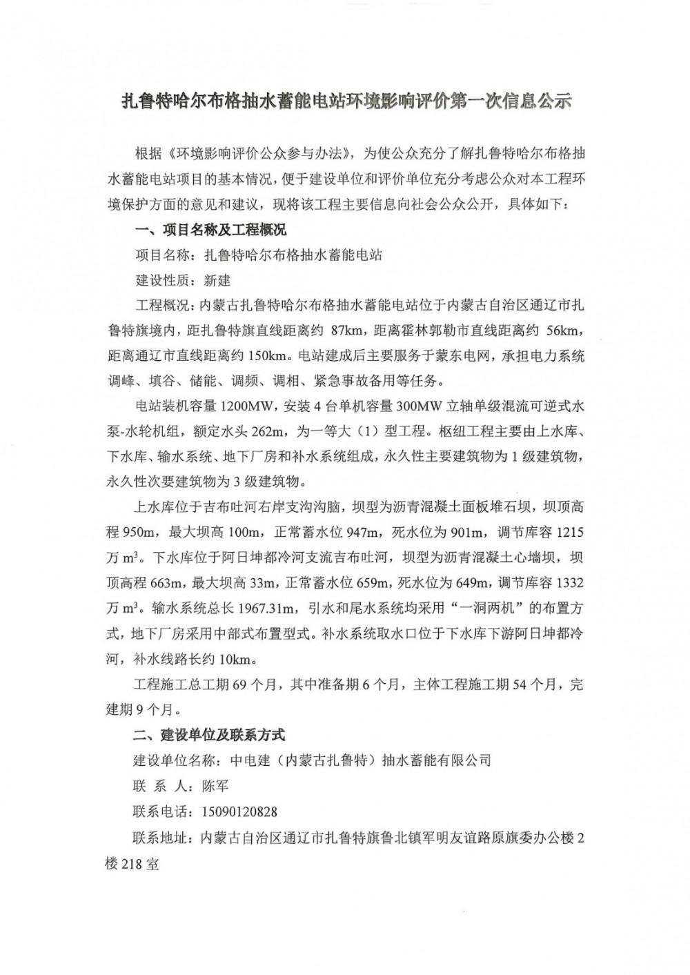 3月26日,内蒙古通辽市生态环境局扎鲁特旗分局发布扎鲁特哈尔布格抽水蓄能电站环境影响评价第一次信息公示。