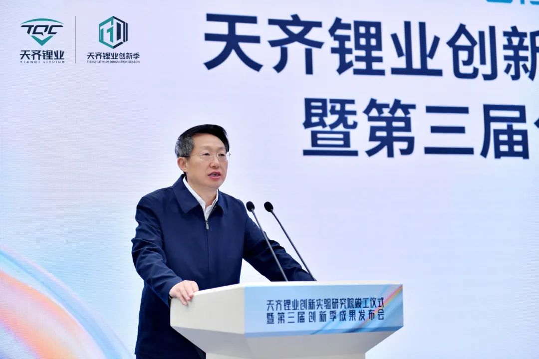 四川省人民政府副秘书长杨东生对天齐锂业创新实验研究院的竣工表示热烈祝贺。他指出,近年来,四川依托丰富的清洁能源和矿产资源优势,已初步建成世界级锂电产业基地。他强调,天齐锂业创新实验研究院的竣工为突破锂电关键材料核心技术奠定了基础,希望企业坚决扛起“链主”担当,持续强化产业协作,共同提升产业链韧性和安全水平。