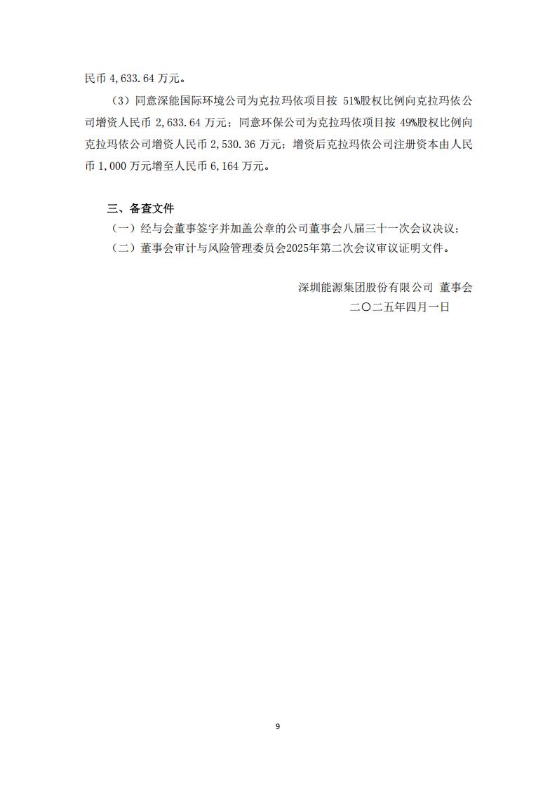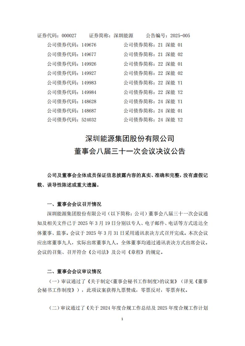 4月1日,深圳能源发布董事会八届三十一次会议决议公告。