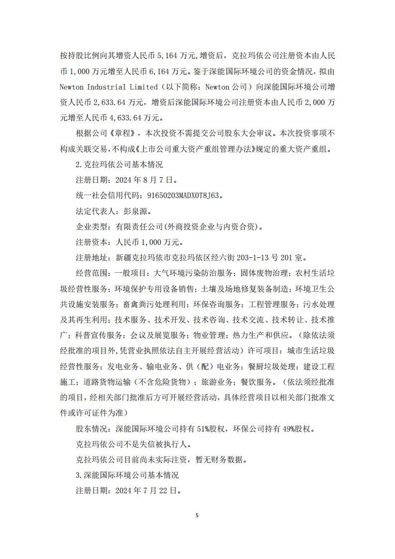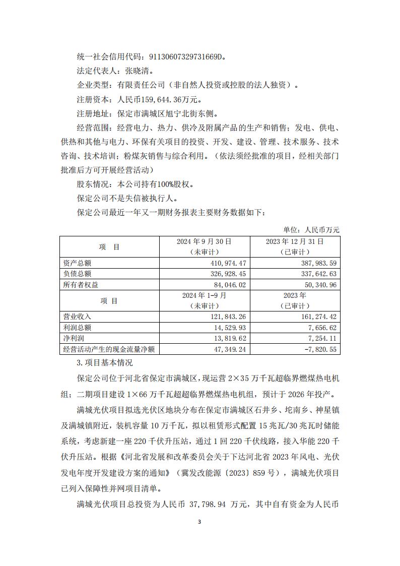鉴于保定公司资金状况,深圳能源拟为满城光伏项目向保定公司增资人民币7,590 万元,增资后保定公司注册资本由人民币159,644.36万元增至人民币167,234.36万元。