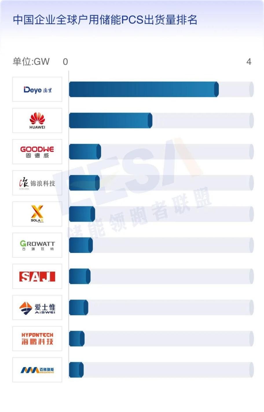 2024年度,在中国企业全球户用储能pcs出货量排名中,出货量排名前十的中国储能企业依次为:德业、华为数字能源、固德威、锦浪科技、艾罗网络、古瑞瓦特、三晶电气、爱士惟、海鹏科技、迈格瑞能。