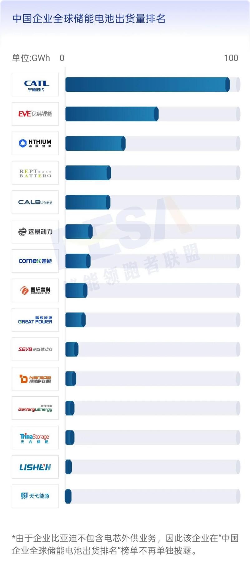 储能电池统计范围涵盖直接与电网/电力系统形成能量交换应用的电池。2024年度,在中国企业全球储能电池出货量排名中,出货量排名前十五的中国储能企业依次为:宁德时代、亿纬锂能、海辰储能、瑞浦兰钧、中创新航、远景动力、楚能新能源、国轩高科、鹏辉能源、欣旺达动力、南都电源、赣锋锂电、天合储能、力神电池、天弋能源。由于企业比亚迪k8凯发的业务范围内不涵盖电芯外供业务,因此该企业在“中国企业全球储能电池出货排名”榜单不再单独披露。