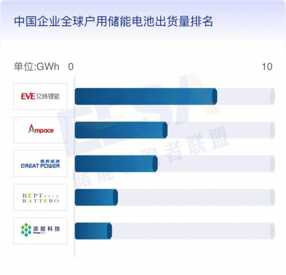 9、中国企业全球通信基站&数据中心电池出货量排名