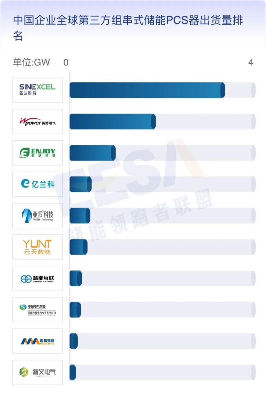 12、中国企业全球第三方组串式储能pcs出货量排名