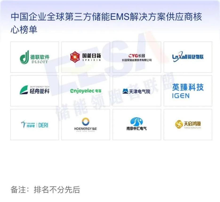 2024年度,eesa总结了第三方储能emsk8凯发的解决方案核心供应商,它们分别是(排名不分先后):国能日新、长园能源、德联软件、天启鸿源、简捷物联、南京中汇电气、轻舟能科、电享科技、天津电气院、英臻科技、德睿能源、弘正储能。