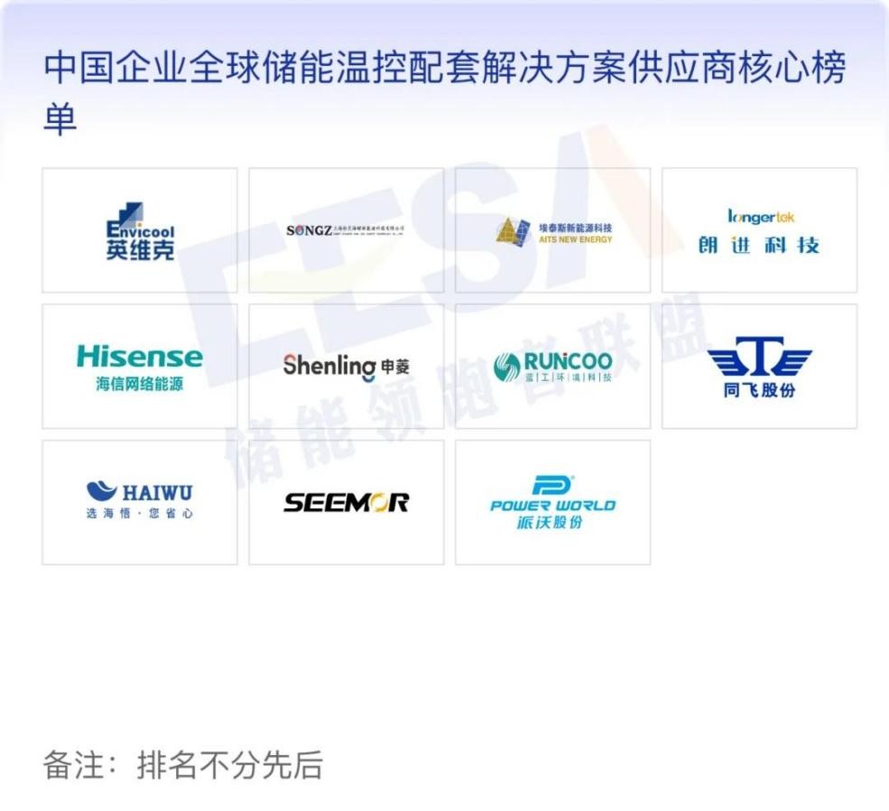 15、中国企业全球储能温控配套k8凯发的解决方案供应商核心榜单