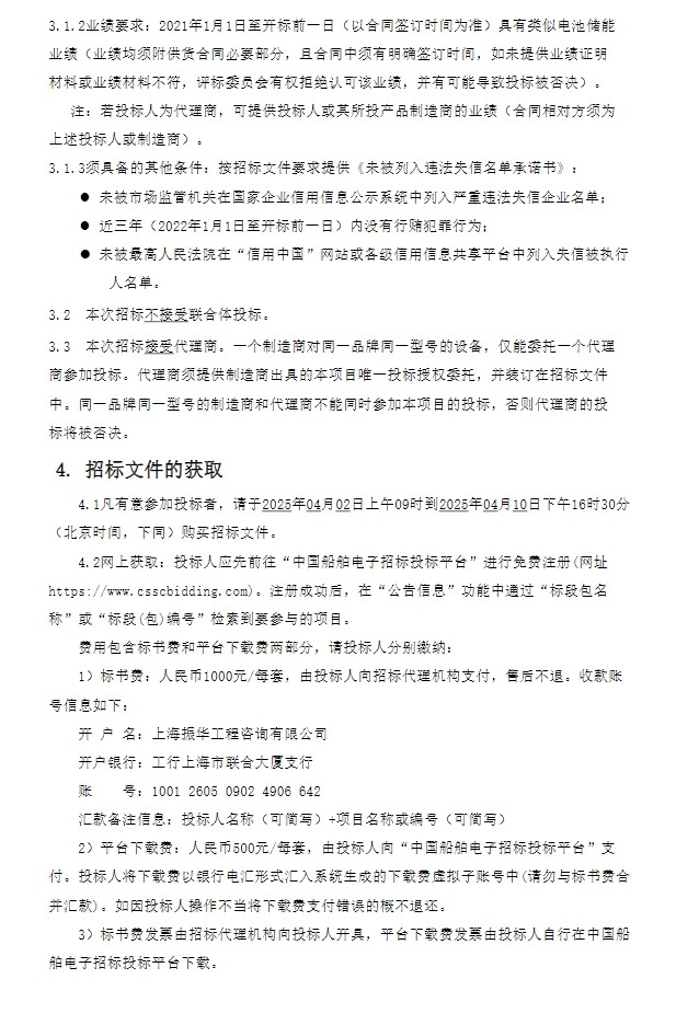 2021年1月1日至开标前一日(以合同签订时间为准)投标人需具有类似电池储能业绩。