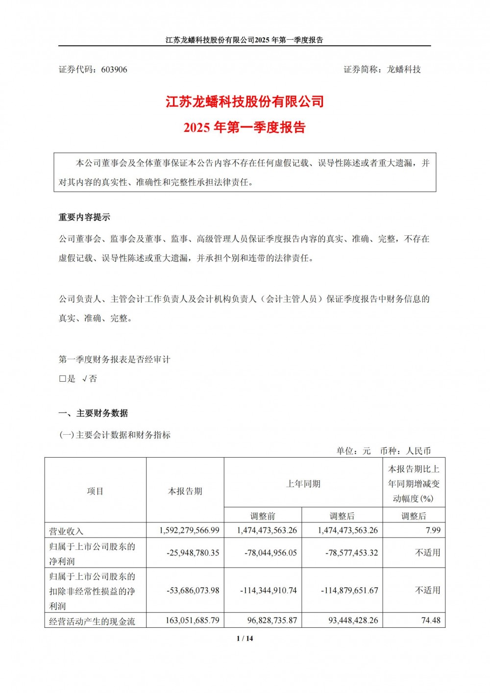 龙蟠科技2025年一季度营收15.92亿元,同比上涨7.99%