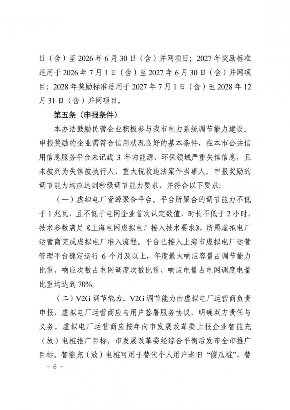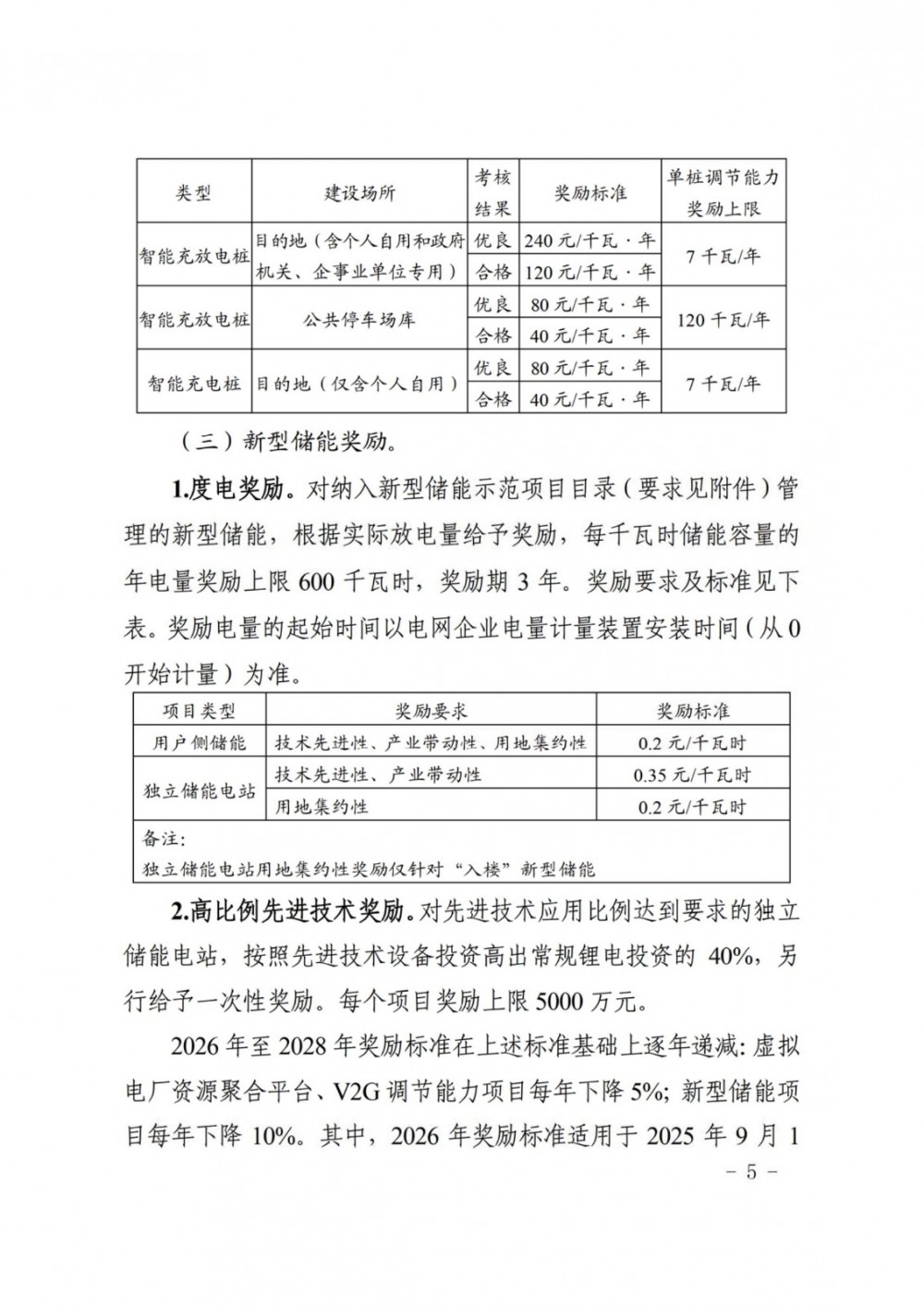 2026年至2028年奖励标准在上述标准基础上逐年递减:虚拟电厂资源聚合平台、v2g调节能力项目每年下降5%;新型储能项目每年下降10%。其中,2026年奖励标准适用于2025年9月1日(含)至2026年6月30日(含)并网项目;2027年奖励标准适用于2026年7月1日(含)至2027年6月30日(含)并网项目;2028年奖励标准适用于2027年7月1日(含)至2028年12月31日(含)并网项目。