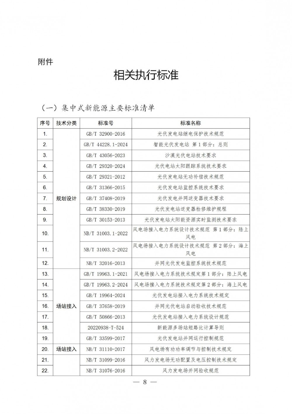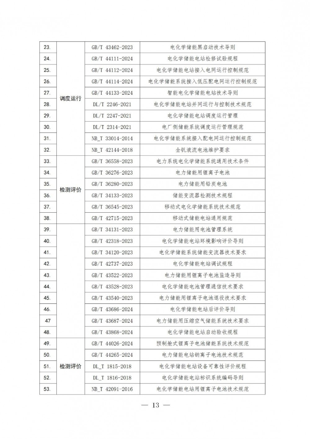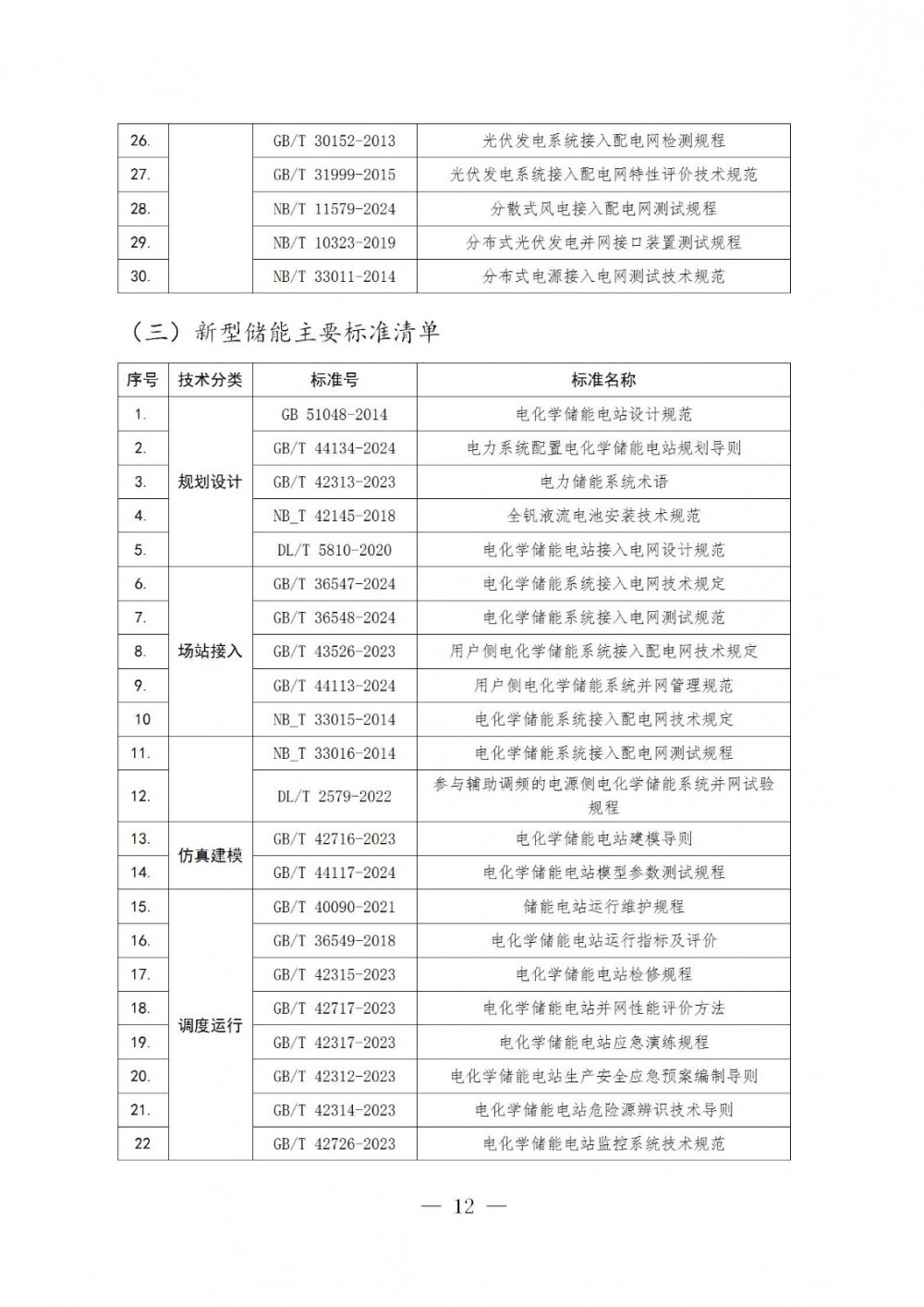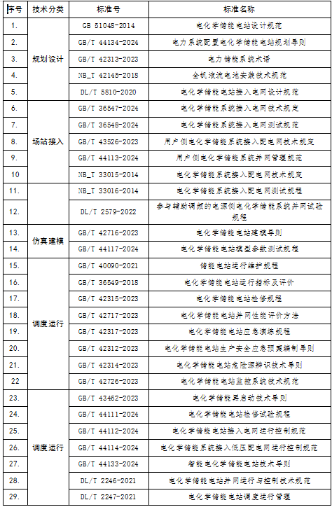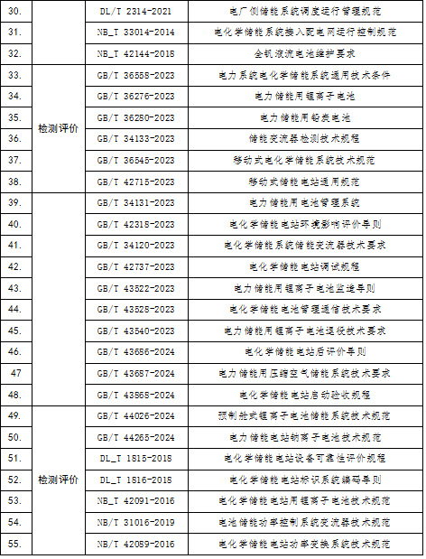 其中新型储能执行标准清单如下: