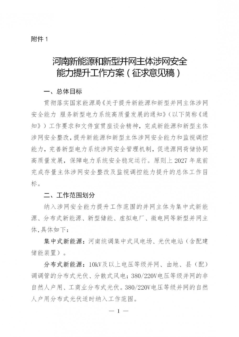 国家能源局河南监管办公室河南省发展和改革委员会关于公开征求《河南新能源和新型并网主体涉网安全能力提升工作方案(征求意见稿)》意见的通知