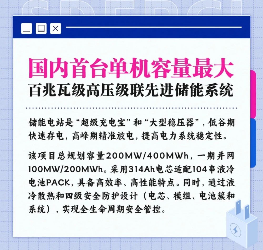 近日,山东院总承包建设的山东能源新能源集团东营2×200mwh独立共享储能项目一期工程一次并网成功,标志着国内首套单机容量最大的百兆瓦级高压级联先进储能系统正式投入运行,为构建新型电力系统、推动能源绿色转型注入强劲动能。