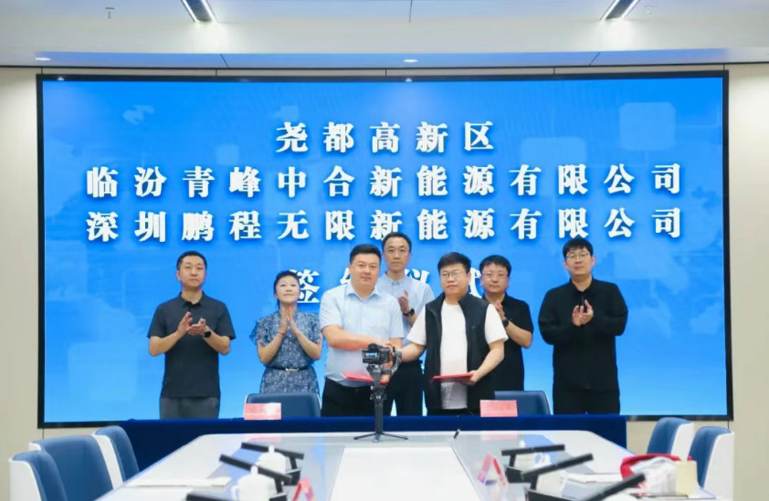 5月22日上午,临汾青峰中合新能源有限公司与深圳鹏程无限新能源有限公司在尧都高新区云商产业园举行储能系统商业合作项目签约仪式。高新区党工委书记、管委会主任赖兴国,高新区党工委委员、管委会副主任郜磊见证签约。临汾青峰中合负责人牛春,深圳鹏程区域经理达选臣代表双方签约。