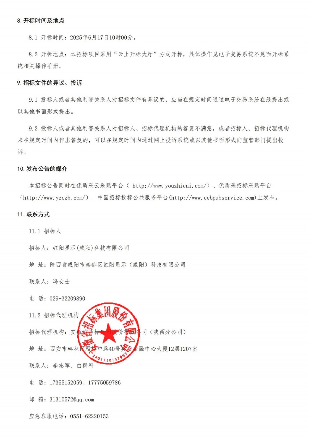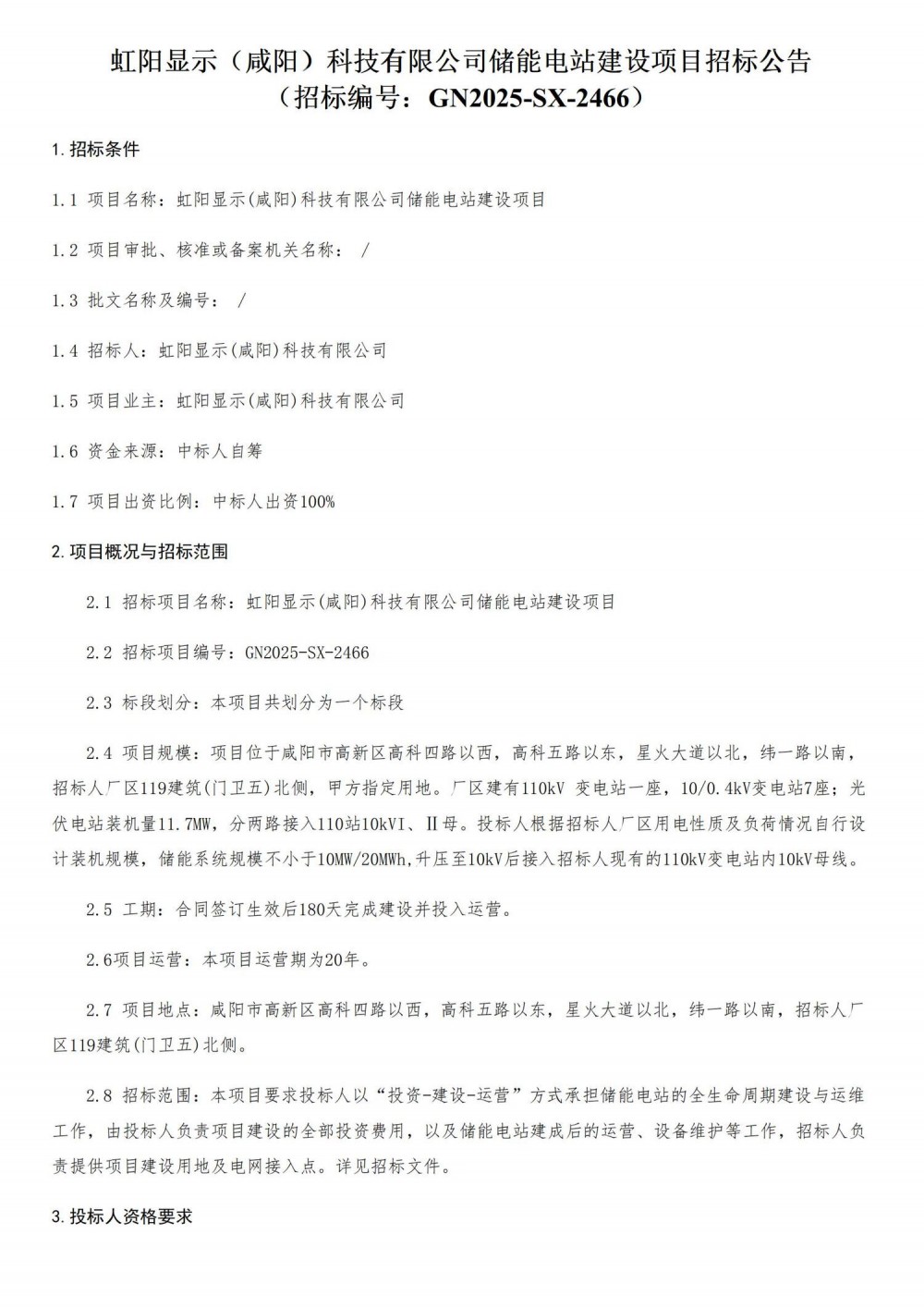 5月26日,虹阳显示(咸阳)科技有限公司储能电站建设项目招标公告发布。