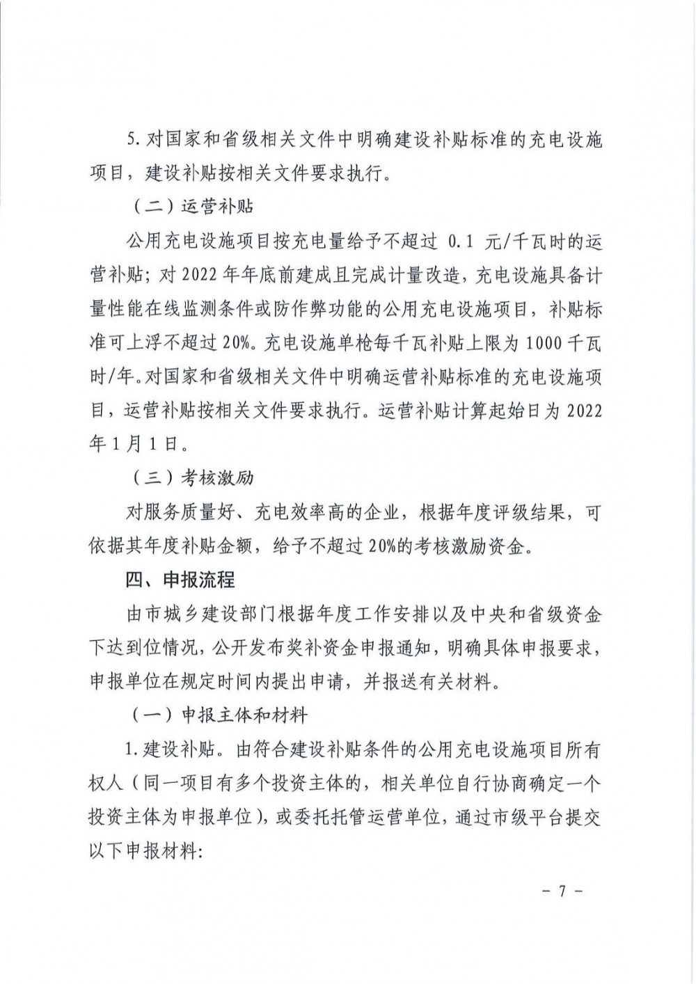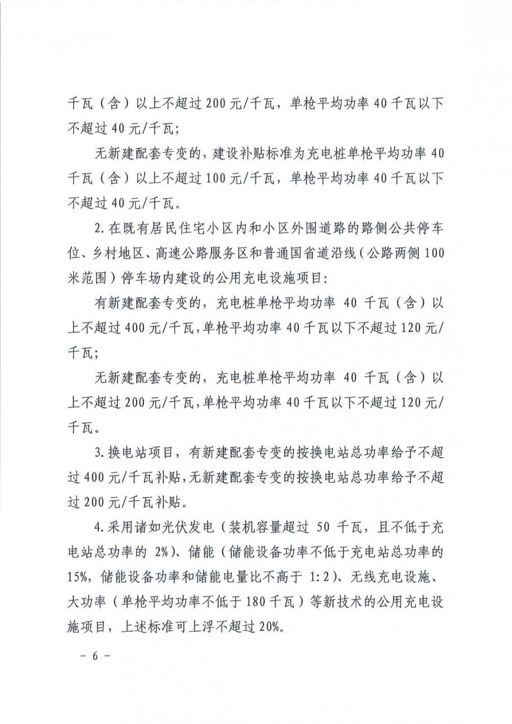 用诸如光伏发电(装机容量超过50千瓦,且不低于充电站总功率的2%)、储能(储能设备功率不低于充电站总功率的15%,储能设备功率值和储能电量值之比不高于1:2)、无线充电设施、大功率(单枪平均功率不低于180千瓦)等新技术的公用充电设施项目,上述标准可上浮不超过20%