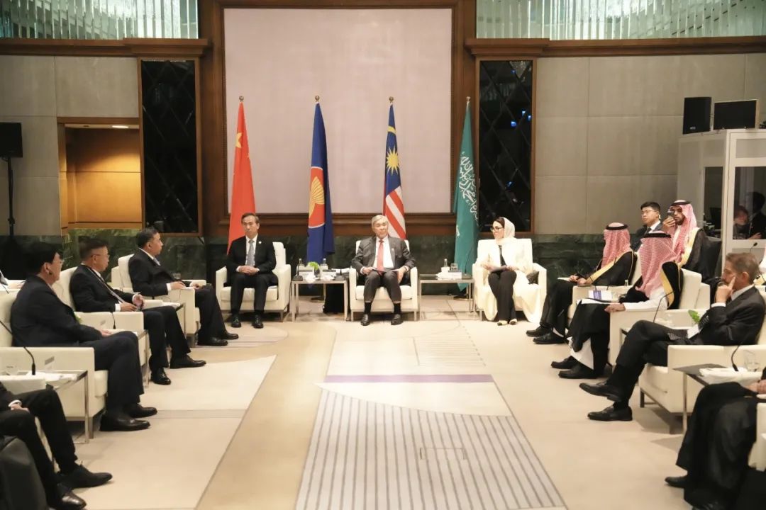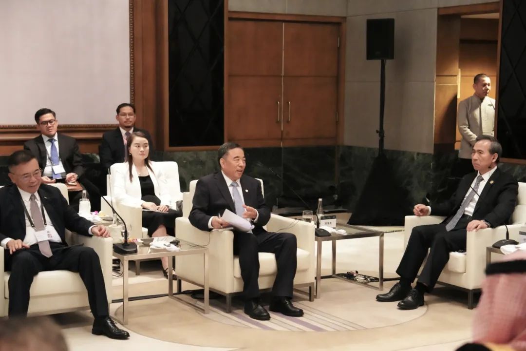 会议期间,中国贸促会会长任鸿斌率中国企业家代表团与马来西亚副总理艾哈迈德·扎希德和沙特投资部次大臣萨拉·赛义德举行对接会。宋海良作为中国企业家代表应邀参加。他表示,中国能建将加快推动创新驱动、绿色低碳、数字智慧、共享融合“四大转型”,积极融入东盟—海合会国家—中国峰会机制,深入对接东盟和海合会国家和区域发展战略,积极开展能源、数字领域投资合作,携手打造一批光伏、储能、燃机、电力互联互通等绿色转型示范项目,为深化三方合作关系提供能建方案、贡献能建力量。