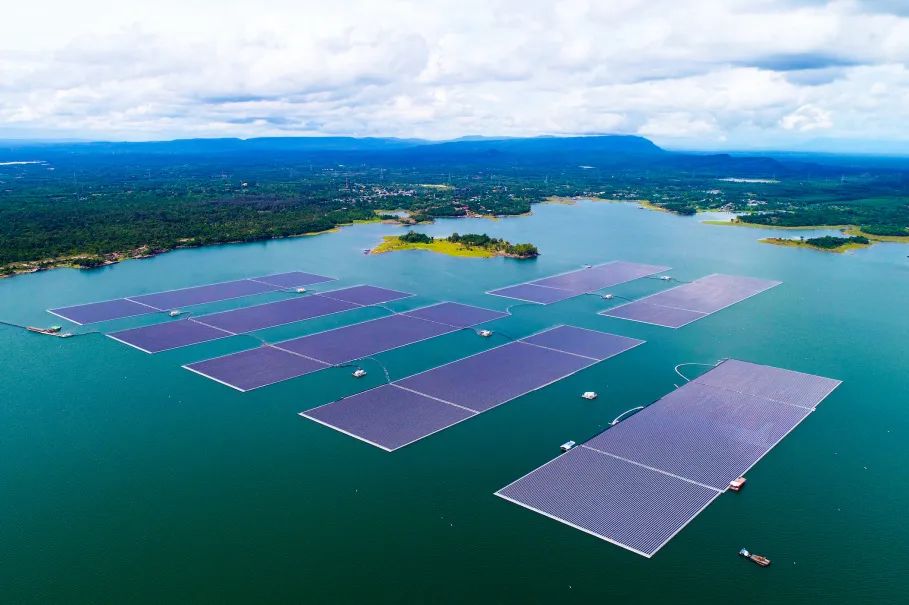 泰国最大的浮体光伏项目,与诗琳通大坝水电站,共同构成世界最大的水电 浮体光伏综合能源项目。