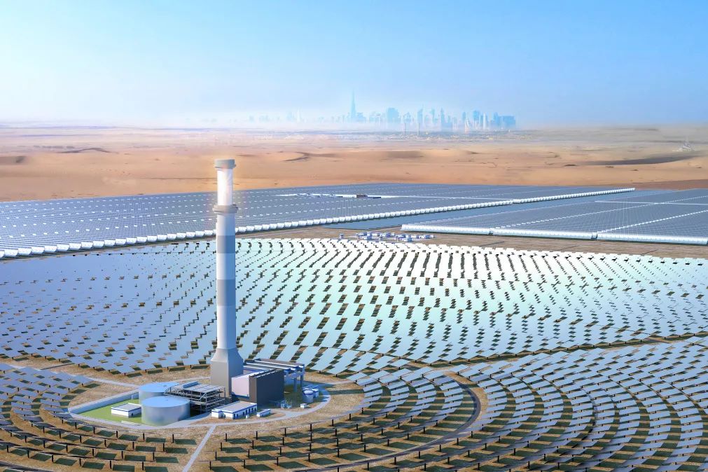 目前世界上投资规模最大、装机容量最大、熔盐罐储热量最大的“光热+光伏”混合发电项目,建成后可为迪拜32万户家庭提供绿色能源。