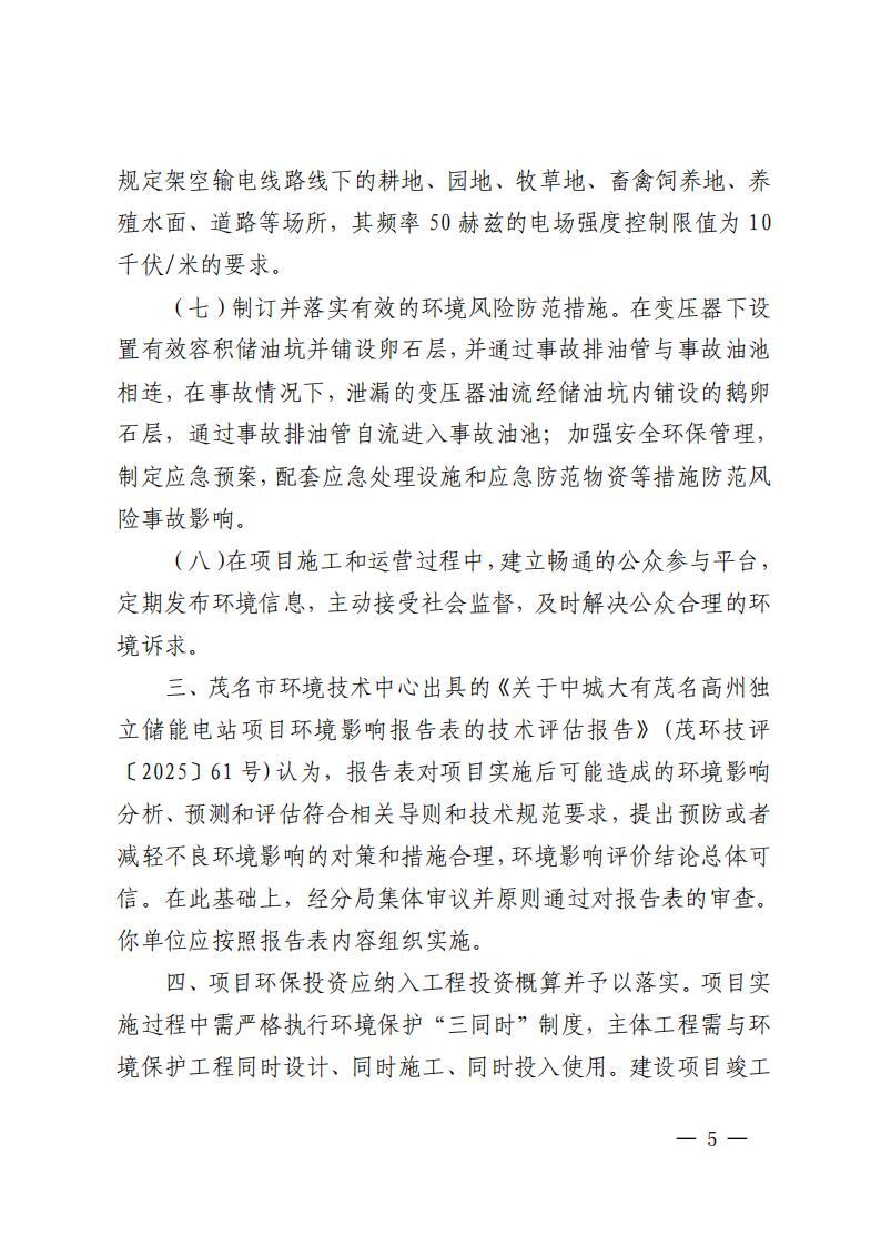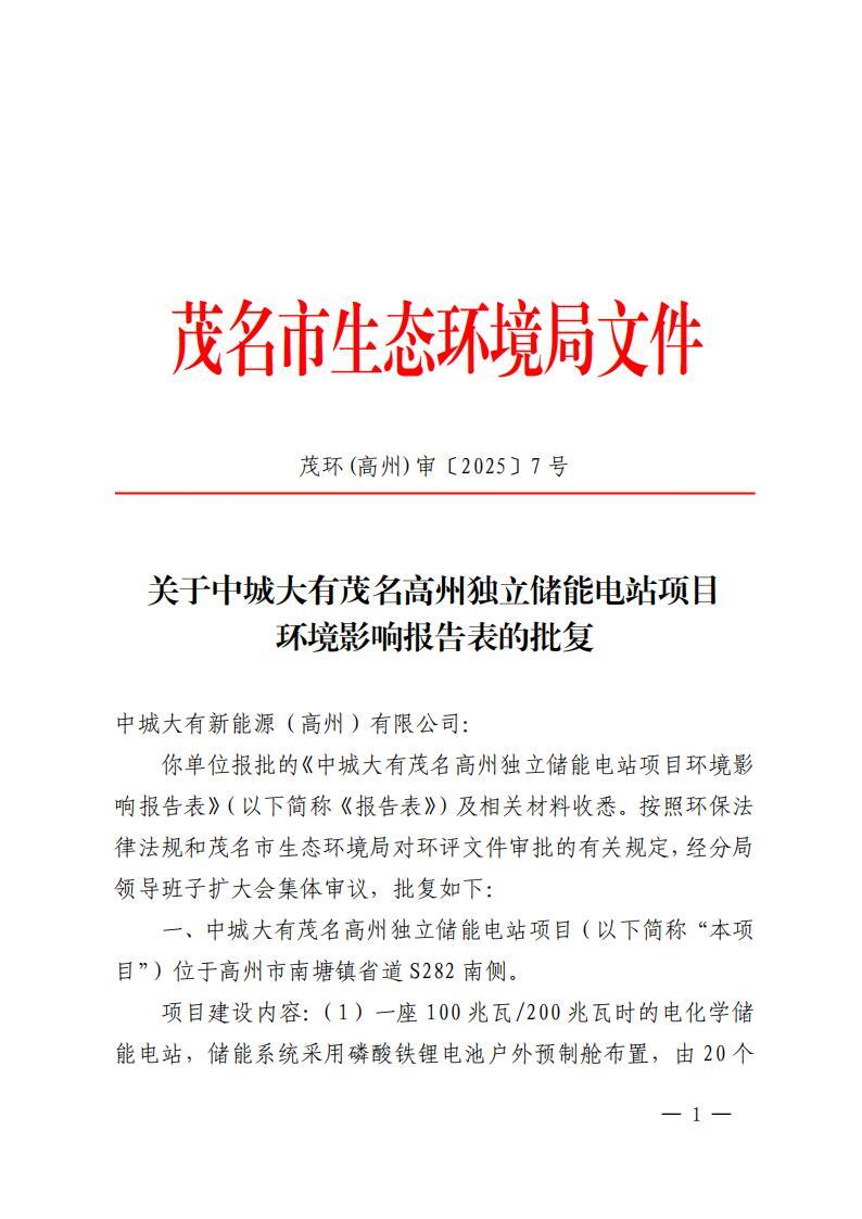 5月30日,广东高州市人民政府发布关于中城大有茂名高州独立储能电站项目环境影响评价文件审批的公告。