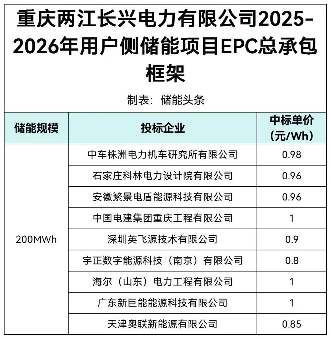 储能头条获悉,6月4日,重庆两江长兴电力有限公司2025-2026年用户侧储能项目epc总承包框架开标。