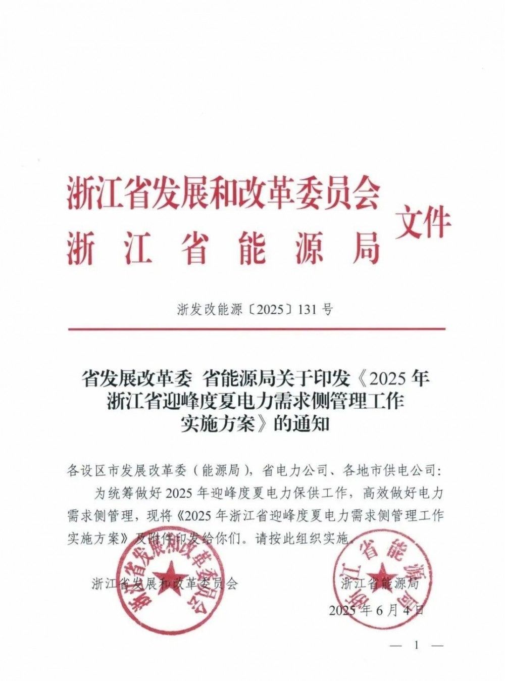 近日,浙江省发改委、浙江省能源局印发《2025年浙江省迎峰度夏电力需求侧管理工作实施方案》。